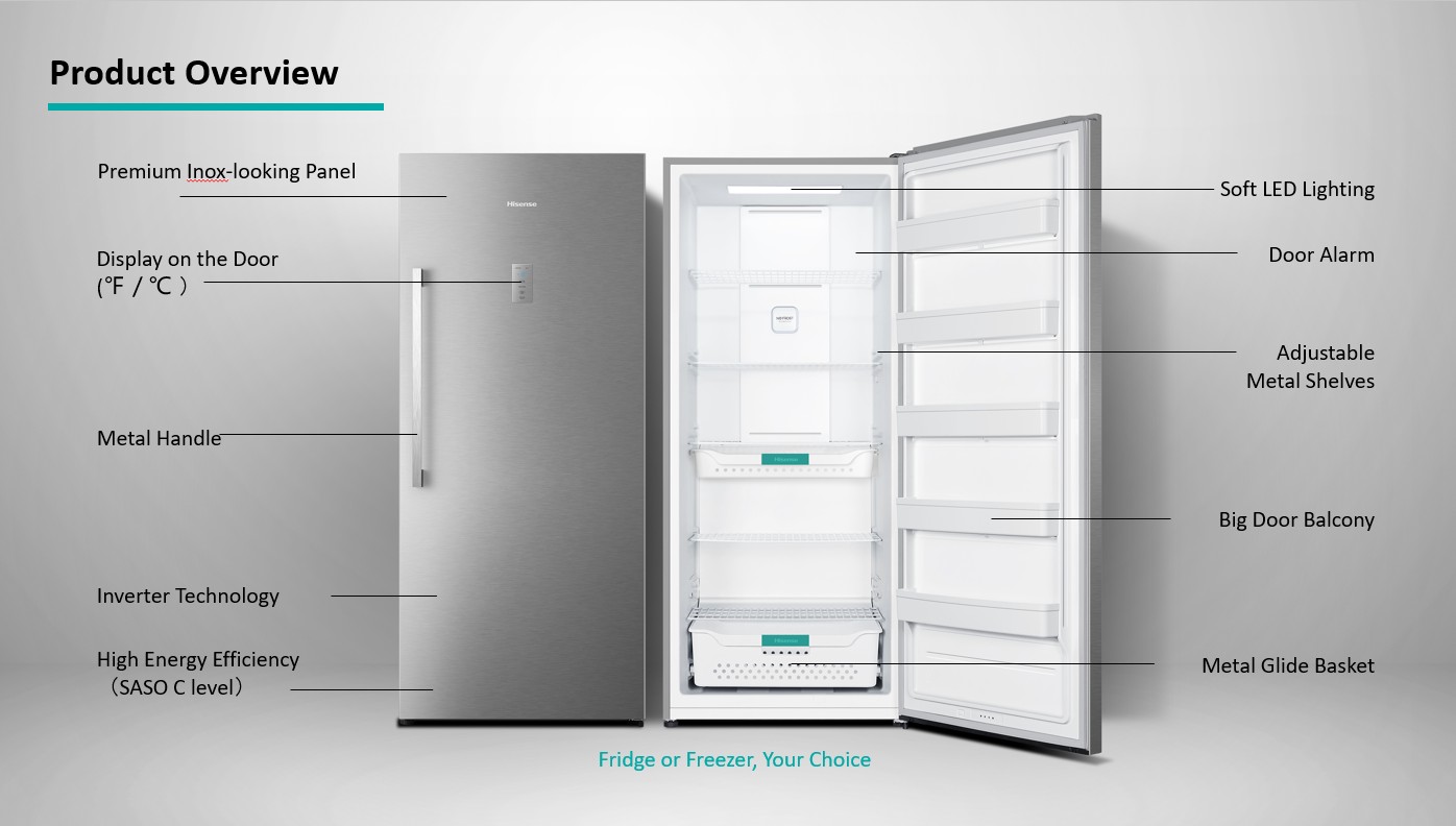 Hisense, Freezer / Fridge Convertible, 2-in-1, One Door, 20.9 Cu.ft, Inverter, Inox Silve